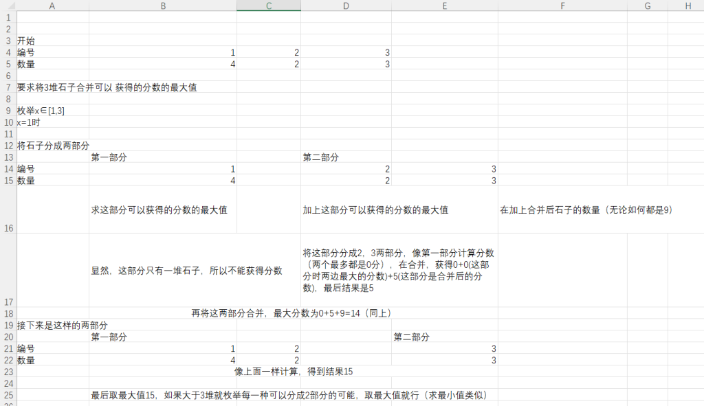 dp数组 表示将第 堆石子合并到一起的分数,那么要求出 ,只要枚举每一个 ,求将 与 合并获得分数(即 ),在找出最大值。